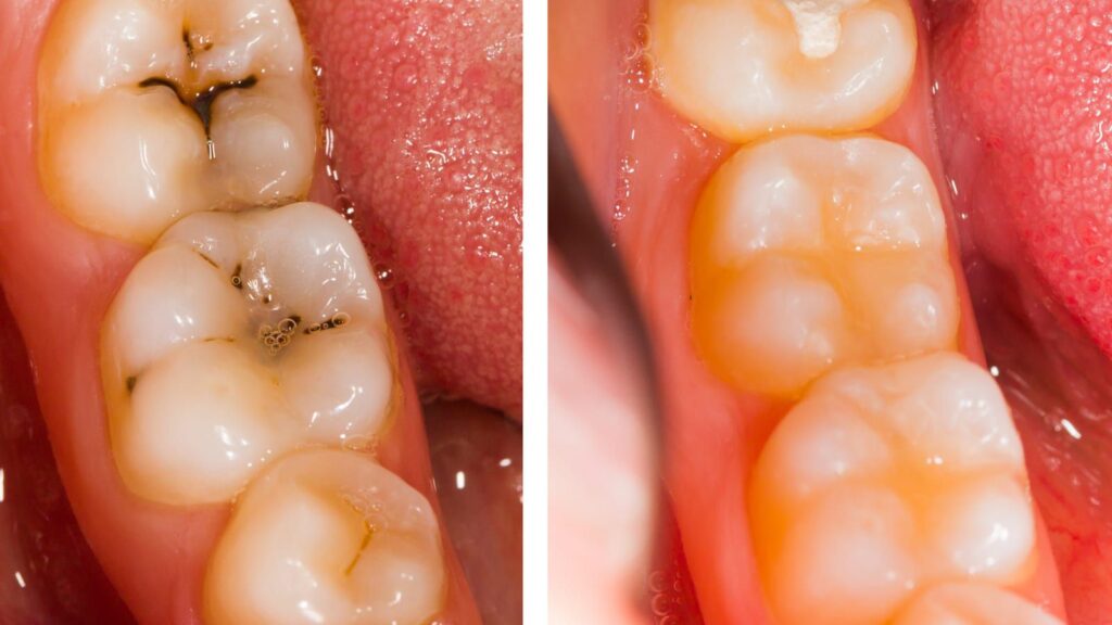 A Composite Filling is a tooth-colored plastic and glass mixture used to restore decayed/carious teeth.